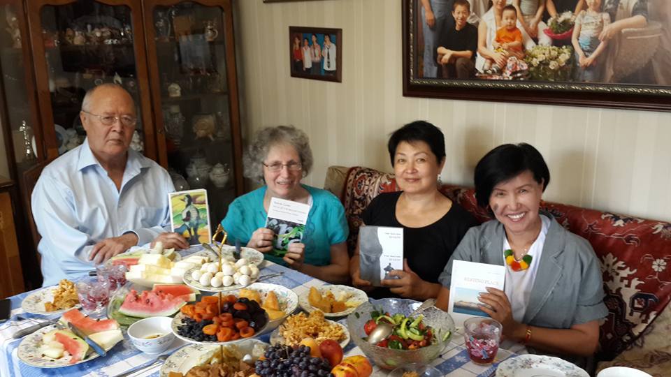 Скрупулезная работа немцев вдохновила нас. К тому времени Асель Камза, ныне работающая над диссертацией в Глазго, сделала подстрочник. Мы возобновили наши дела с Белиндой, послав ей английский подстрочный перевод. Еще год ушел на то, чтобы она завершила свой перевод с подстрочника, который все еще был полон шероховатостей, но уже в подмогу пришел немецкий вариант перевода. Полуготовый перевод мы пытались обсуждать с англоговорящими приятелями, но все равно чувствовали необходимость приезда Белинды в Казахстан, чтобы показать ей степи, горы, озера, реки, дать почувствовать запахи, попробовать кумыс, покататься на лошадях, посидеть в юрте. К нашей радости, Эйр Астана согласилась привезти Белинду из далекой Шотландии, и в августе 2017 года она прибыла в Казахстан.