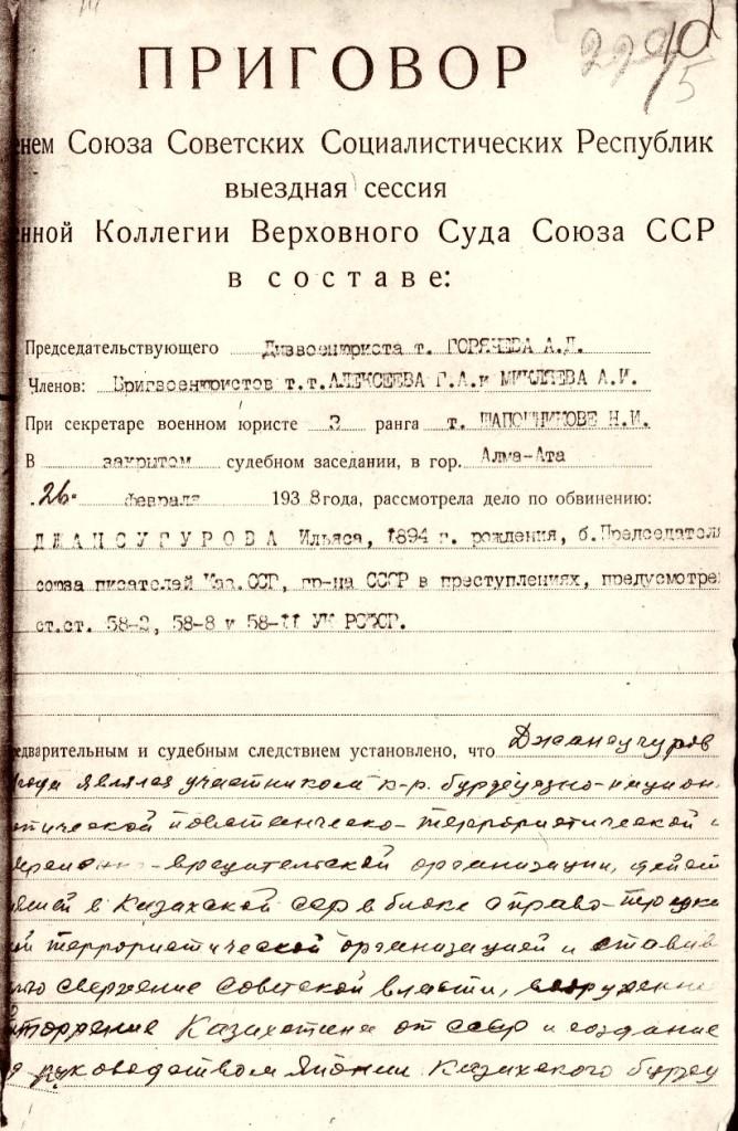 Дело Ильяса Джансугурова. Каким-то образом оторвался уголок с указанием даты окончания дела.